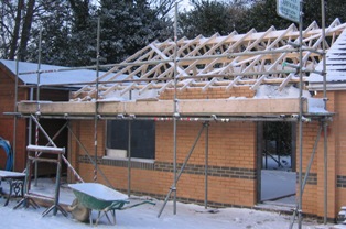 The extension to the office is continuing to take shape although work has been slowed down because of the adverse weather. Cheltenham has been affected by snow several times, the most recent being from 2 - 6 February 2009.
