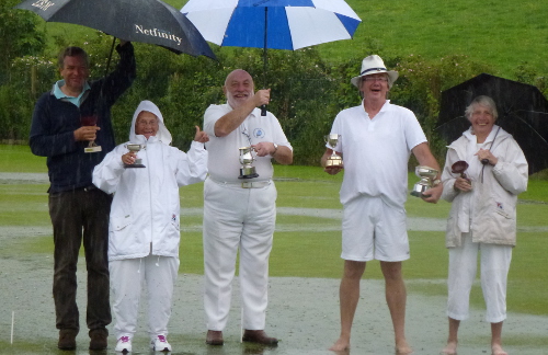 On day four the Met Office issued 1.3 Billion severe flood warnings about the impending Jet Stream crisis and the players congregated for the early presentations and to watch as the lawns finally succumbed to the majesty of Mother Nature. Nevertheless we completed everything except the doubles final which will be played at a later date between Peter Wilson & Eileen Rossiter v Liz Wilson & Garry Wilson (no relation!).