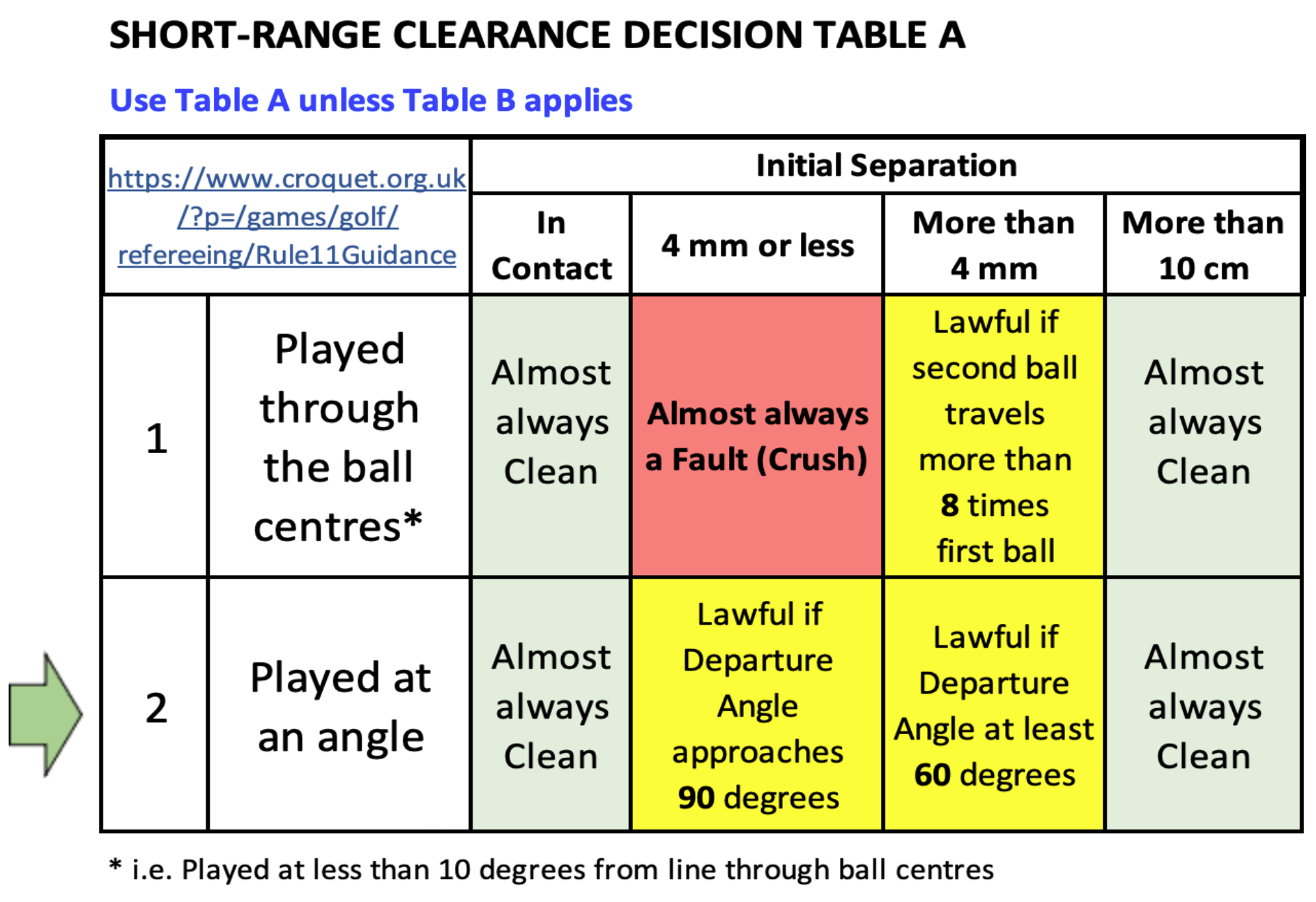 Short Range Clearance Decision Table A
