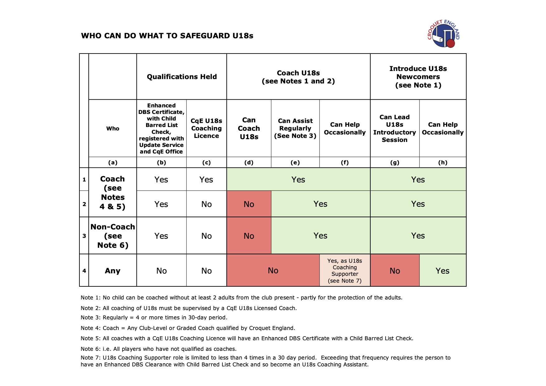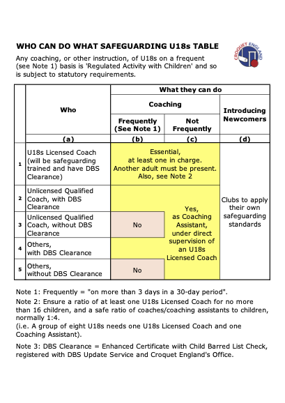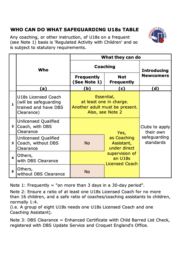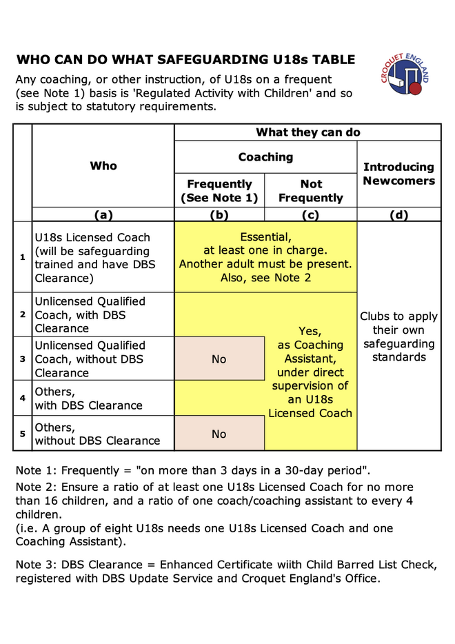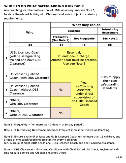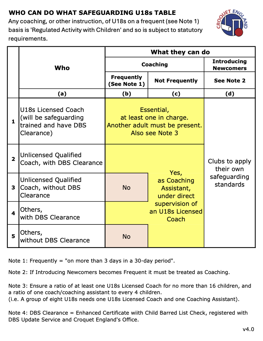 Who Can Do What Safeguarding U18s Table v4.2